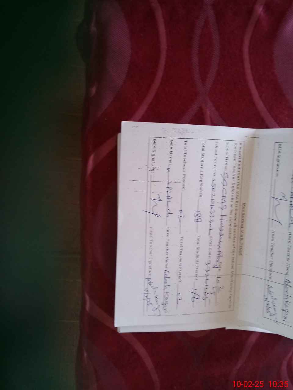 | Certified that this School was Inspected by the Undersigned MEA/DMO Today and the Information Stated Above is as Per Record. | |||||
