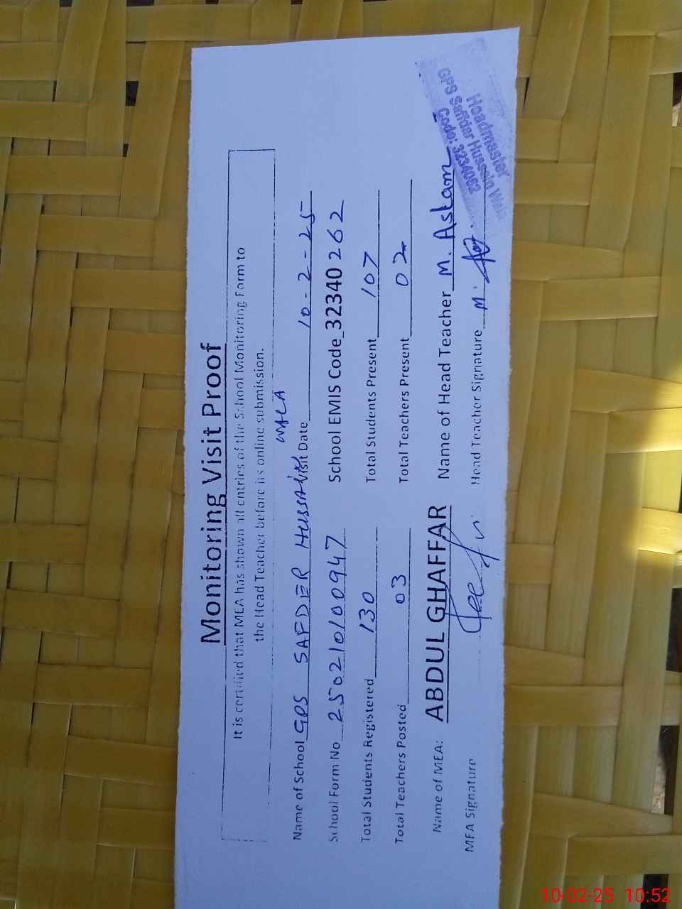 | EMIS Code: 32340262 | Name of School: GPS SAFDER HUSSAIN WALA | |||
