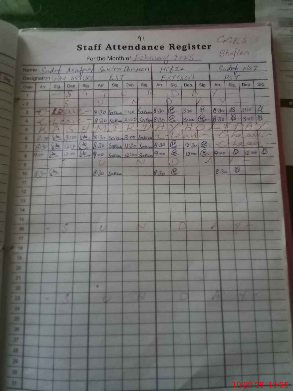 | 35**** | Um**** Fa**** | CDAR | Regular | 0 | 0 | 0 | 0 | 0 | 0 | 0 | 0 | 0 | Absent (Un-Authorized) |