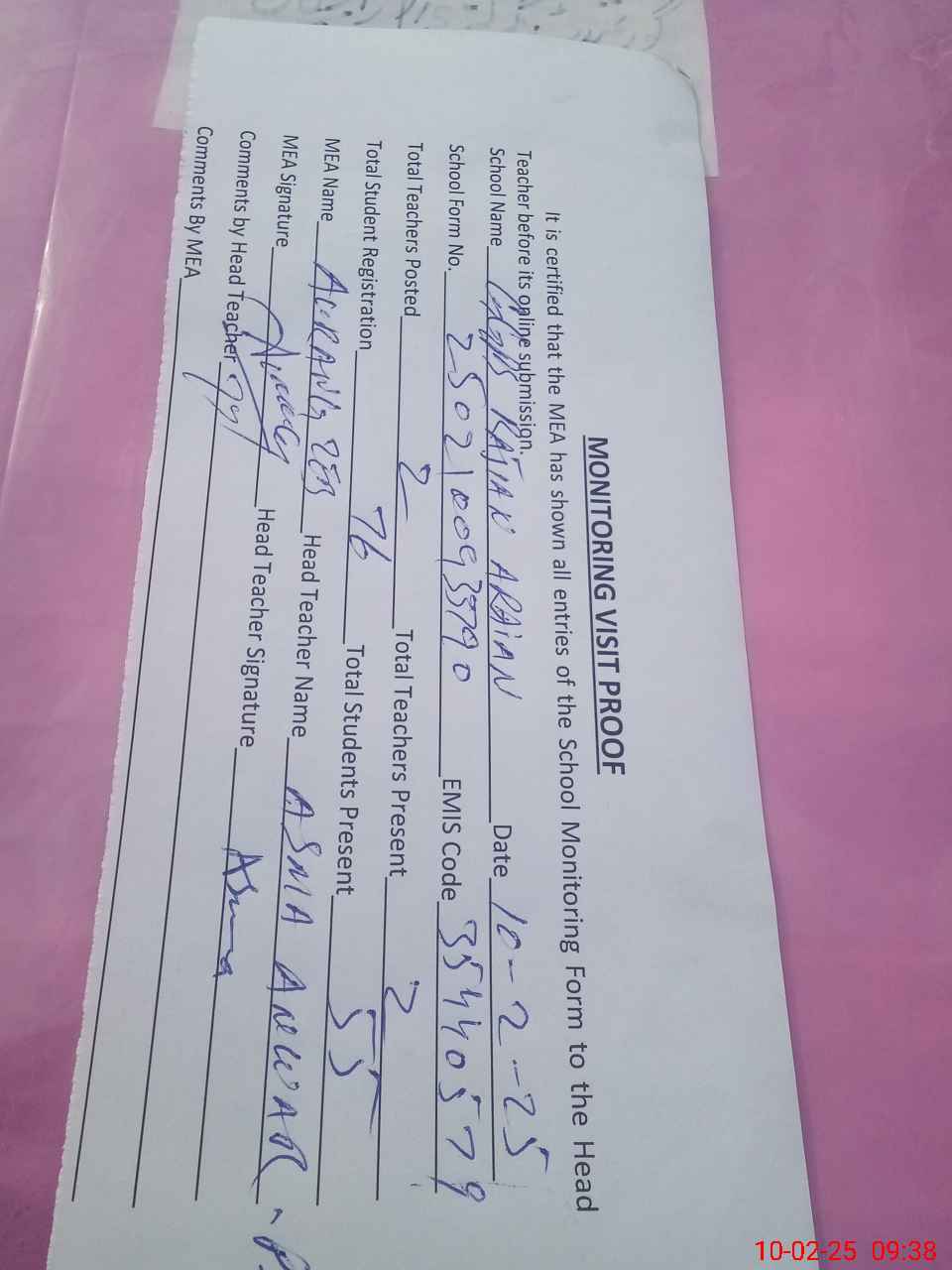 | Certified that this School was Inspected by the Undersigned MEA/DMO Today and the Information Stated Above is as Per Record. | |||||