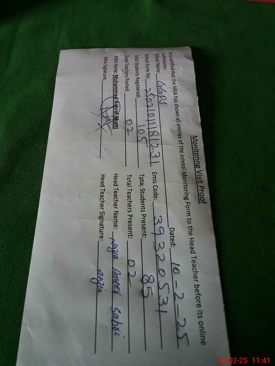 | Certified that this School was Inspected by the Undersigned MEA/DMO Today and the Information Stated Above is as Per Record. | |||||