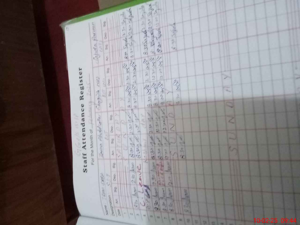 | CNIC | Full Name | Designation | R/C | Absence During Last Calender Month |
