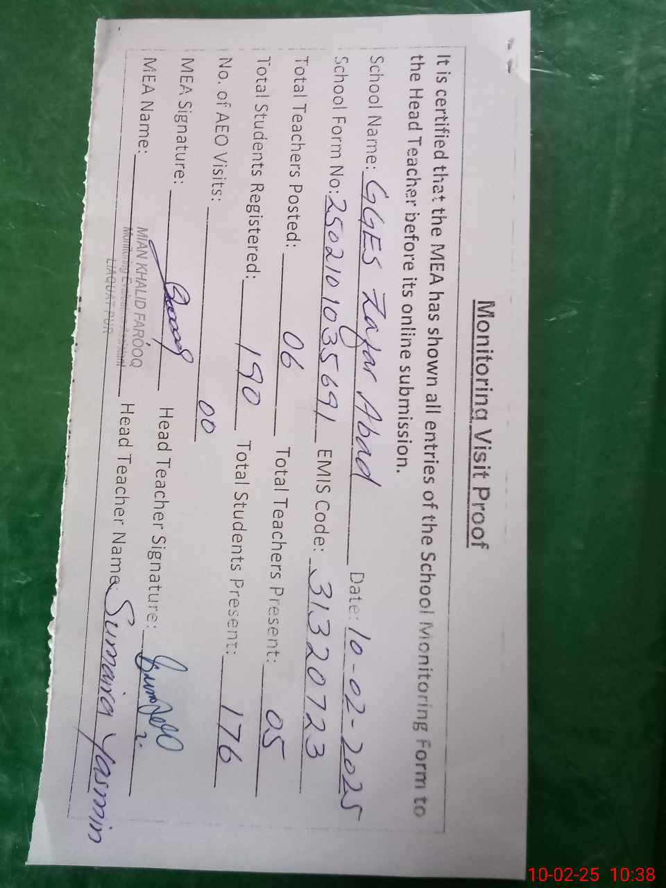 | EMIS Code: 31320723 | Name of School: GGES ZAFAR ABAD | |||