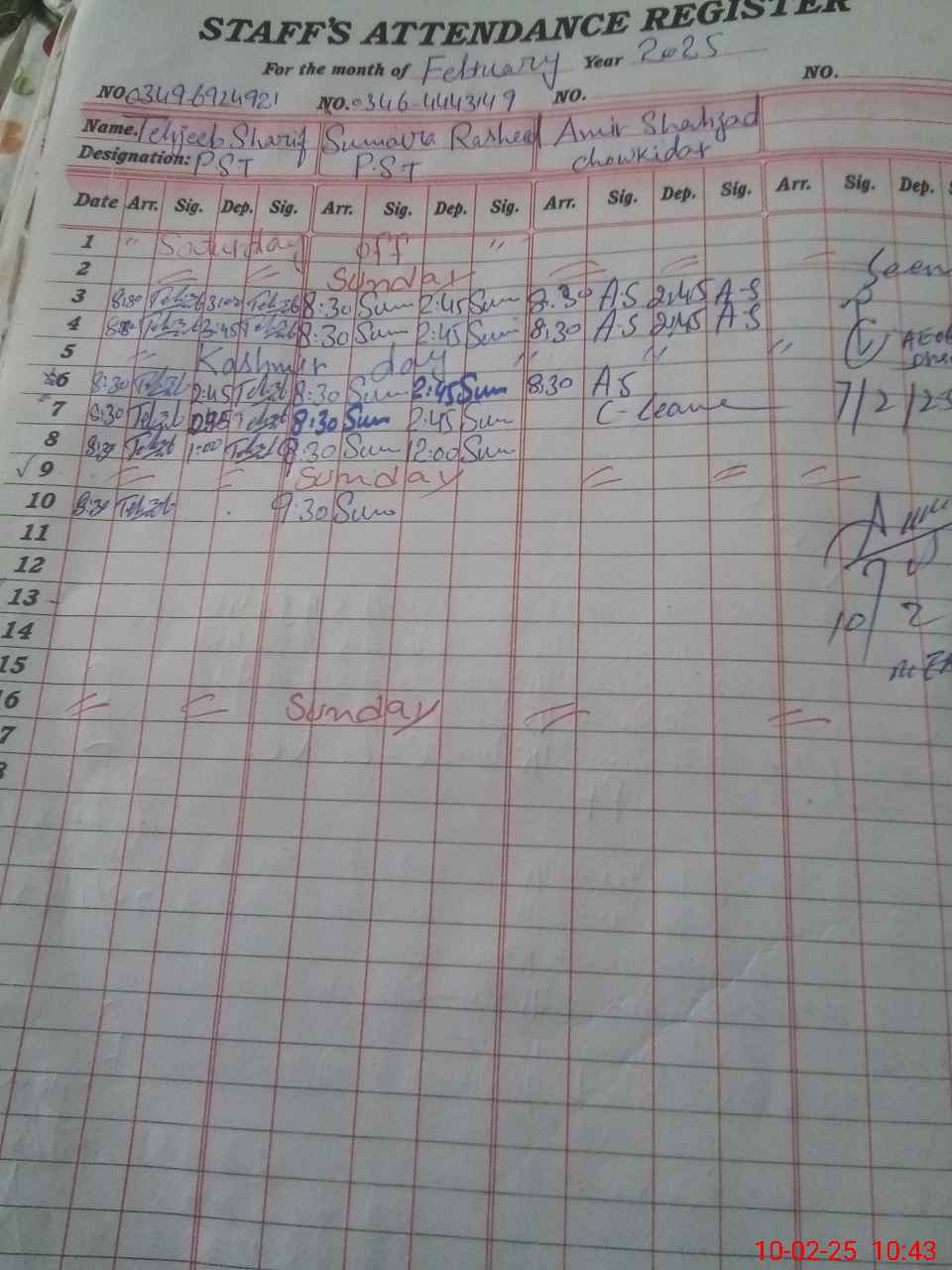 | 54**** | Am**** Sh**** | CHOKIDAR | Regular | 2 | 0 | 1 | 0 | 0 | 0 | 0 | 0 | 2 | Absent (Un-Authorized) |