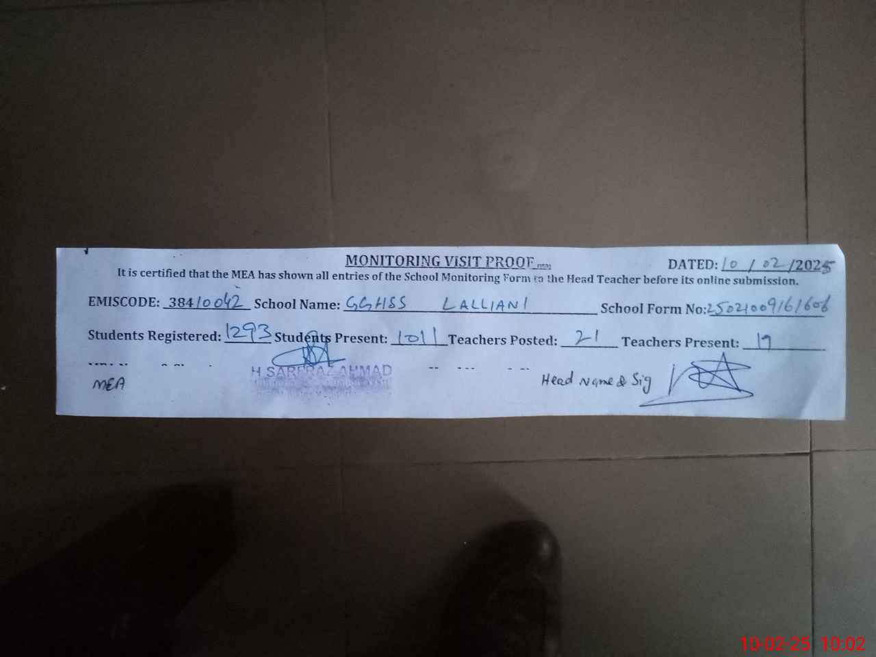 | EMIS Code: 38410042 | Name of School: GGHSS LALLIANI | |||