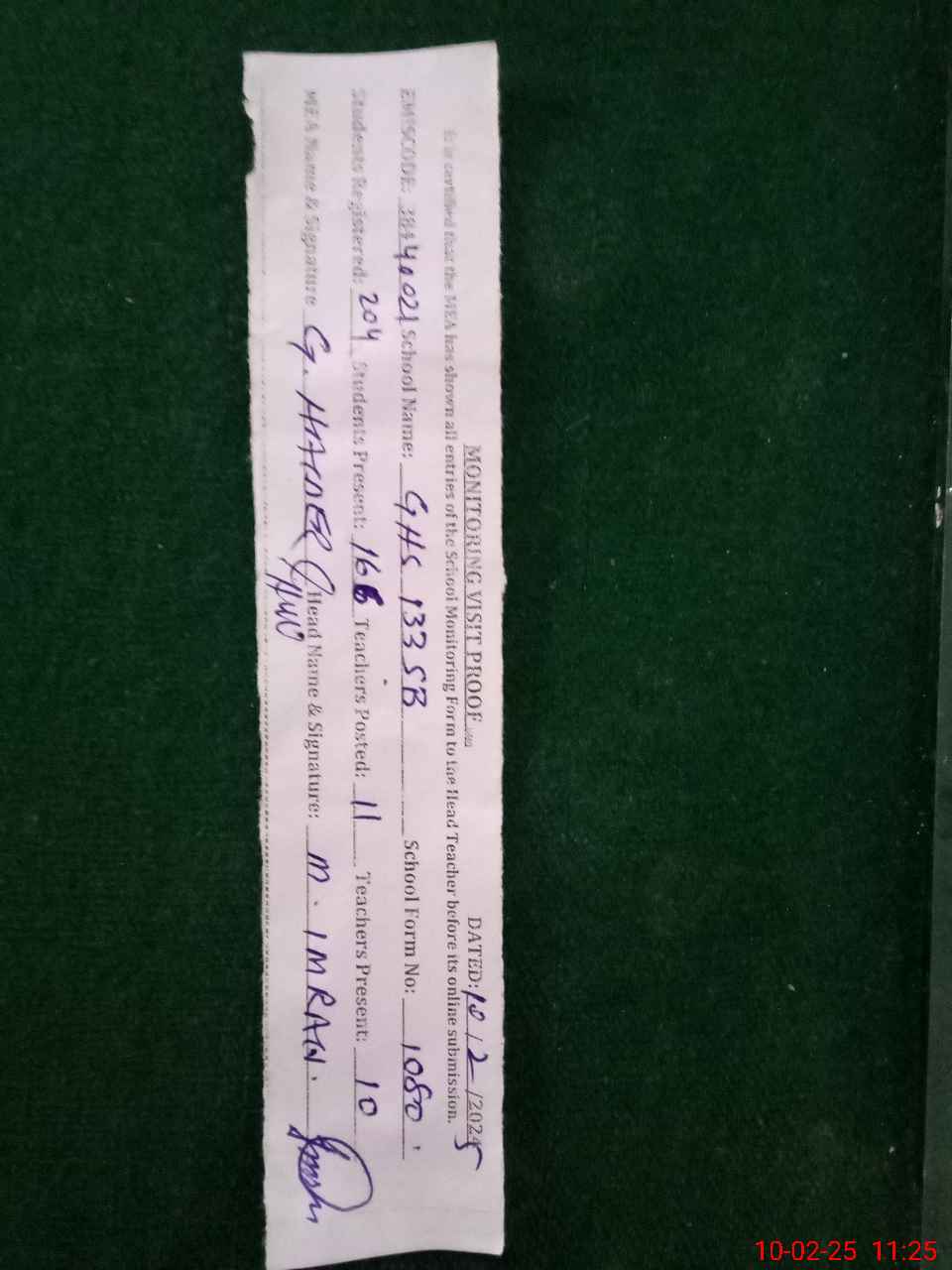 | EMIS Code: 38440021 | Name of School: GHS CHAK NO 133 SB | |||