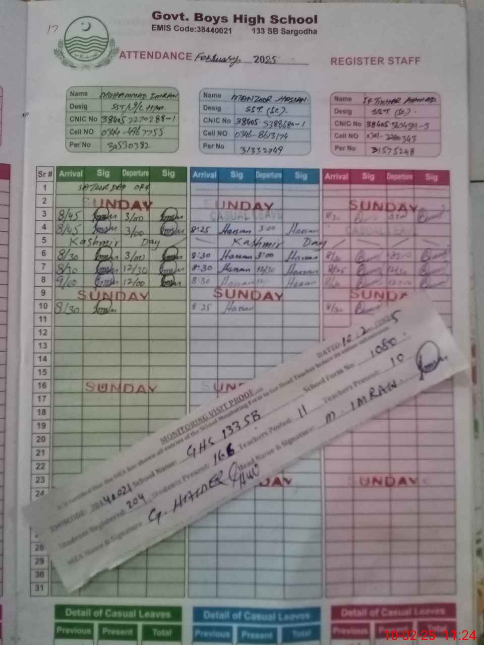 | Name: MU**** IM**** Designation: (School Headmaster's/Headmistress's) SST ARTS Phone/Cell Number: 03**** |