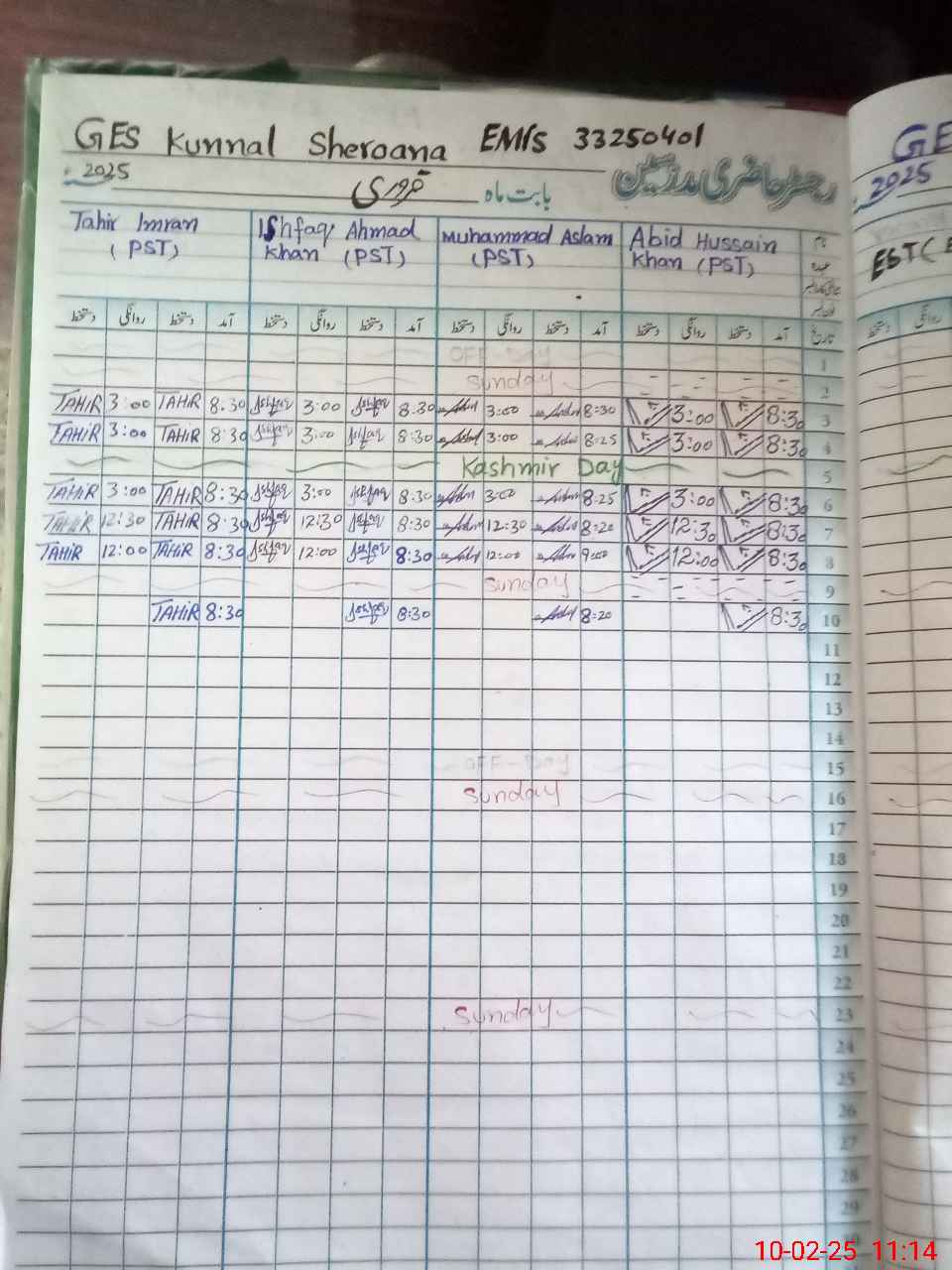 | 33**** | Mu**** Fi**** UlHa**** | Regular | 1 | 0 | 0 | 0 | 0 | 0 | 0 | 0 | 1 | Exam Duty | |