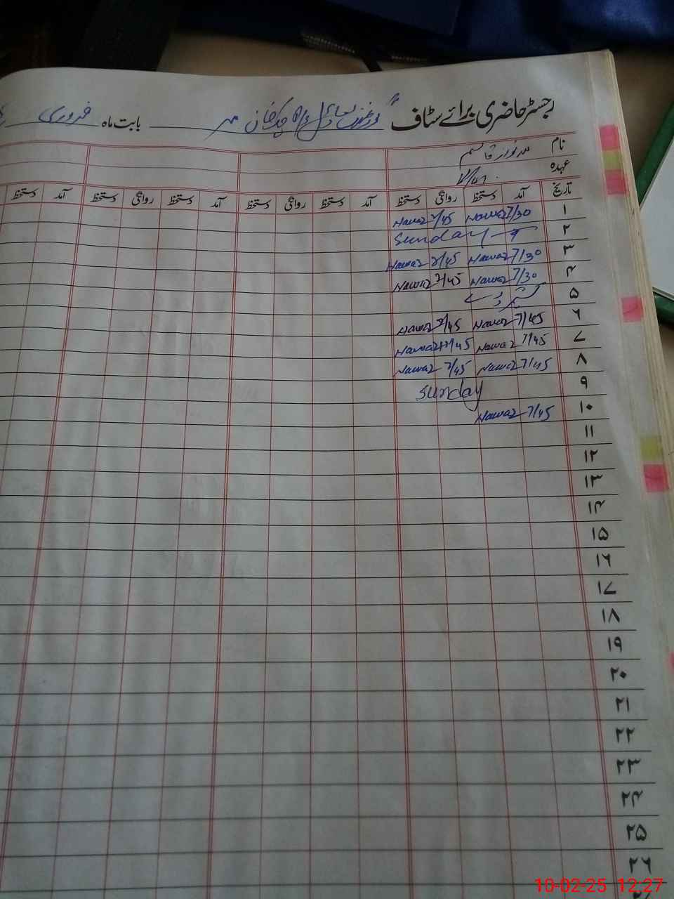 | CNIC | Full Name | Designation | R/C | Absence During Last Calender Month |
