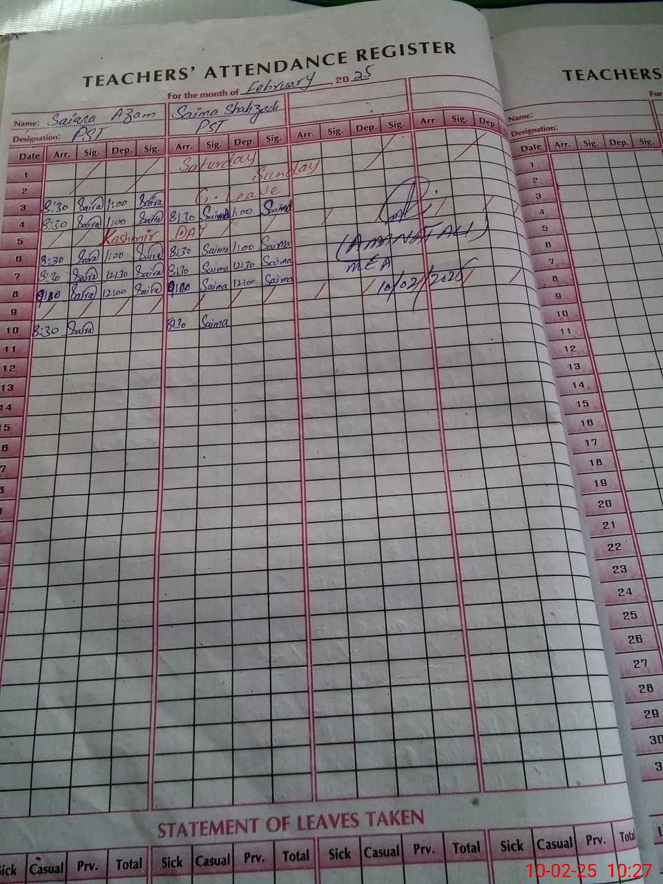 | Name: SA**** AZ**** Designation: (School Headmaster's/Headmistress's) PST Phone/Cell Number: 03**** |