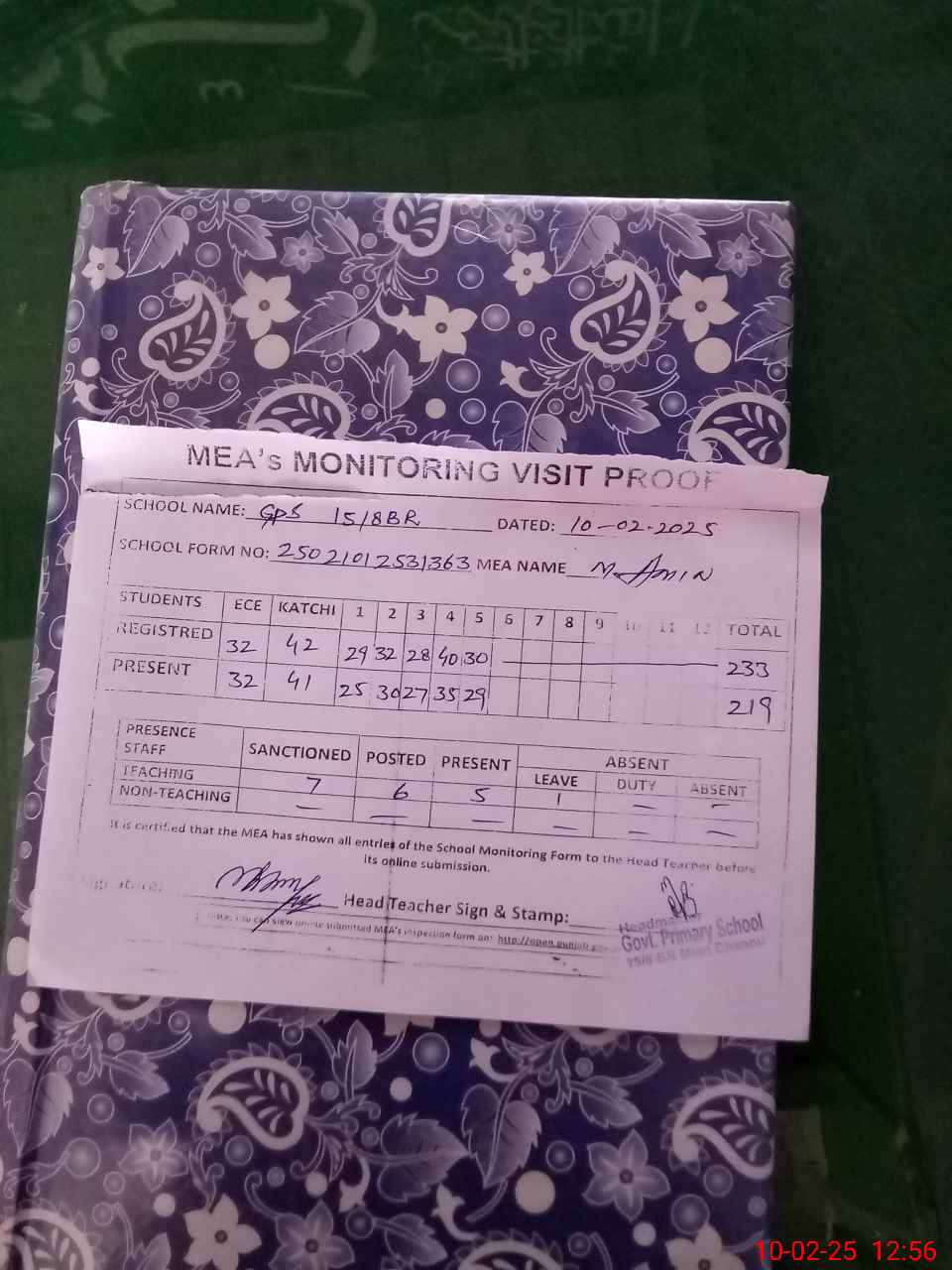 | EMIS Code: 36430239 | Name of School: GPS 15/8-BR, TULAMBA | |||