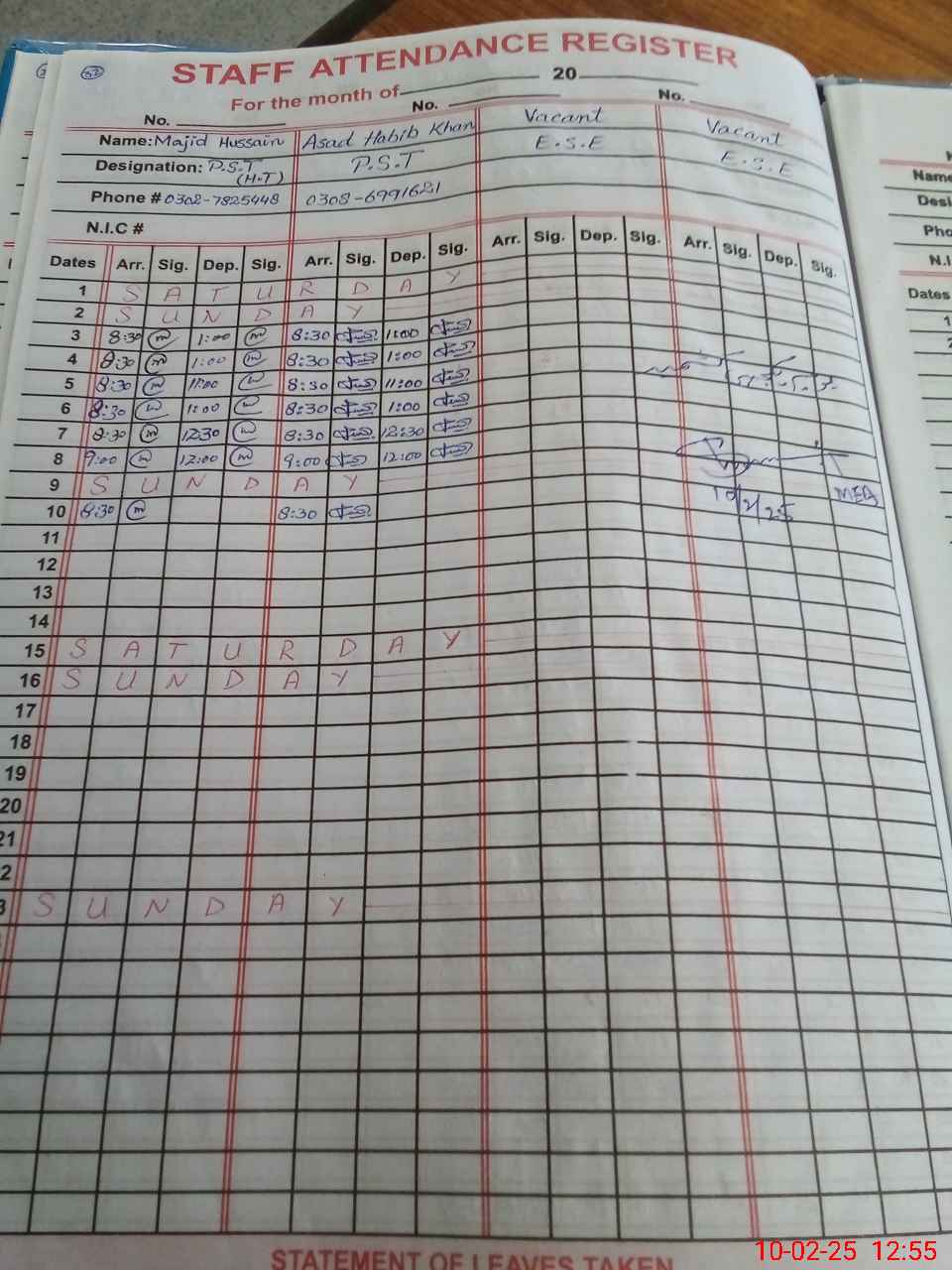 | Name: SH**** RA**** Designation: (School Headmaster's/Headmistress's) PST Phone/Cell Number: 03**** |