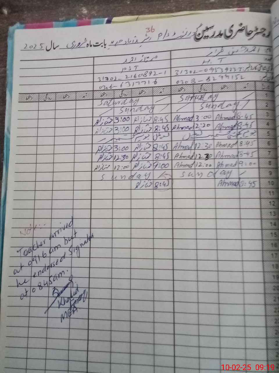 | Name: AH**** HA**** FA**** Designation: (School Headmaster's/Headmistress's) PST Phone/Cell Number: 03**** |