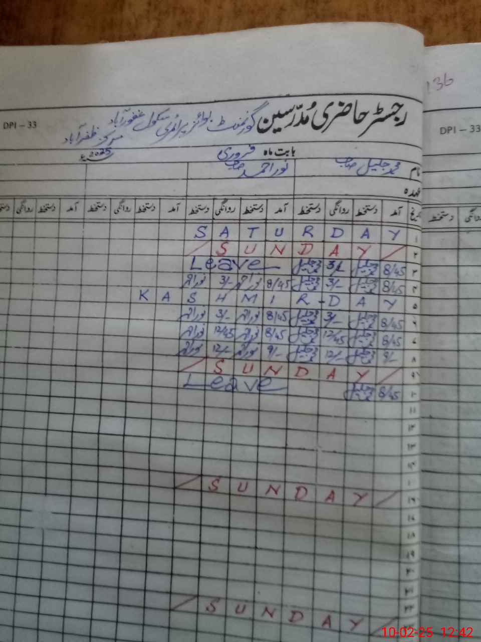 | CNIC | Full Name | Designation | R/C | Absence During Last Calender Month |