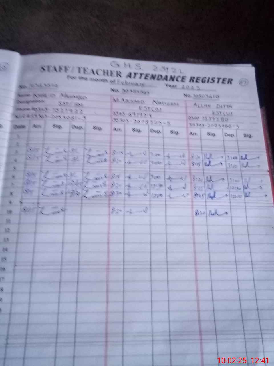 | Name: Mu**** Na**** Designation: (School Headmaster's/Headmistress's) Head Master Phone/Cell Number: 03**** |