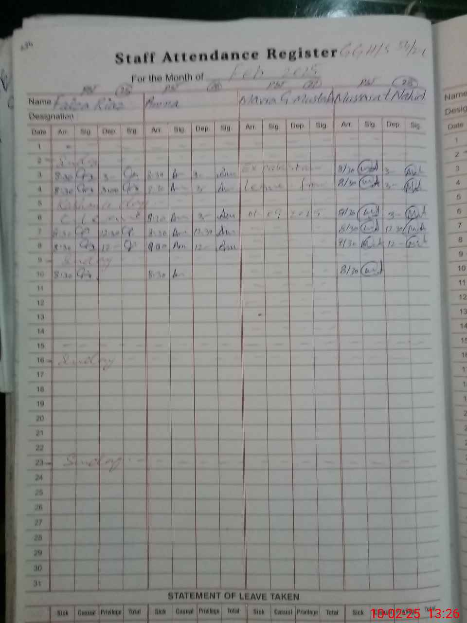| 35**** | Sa**** Ha**** | Contract | 11 | 0 | 0 | 11 | 0 | 0 | 0 | 0 | 0 | Maternity | |