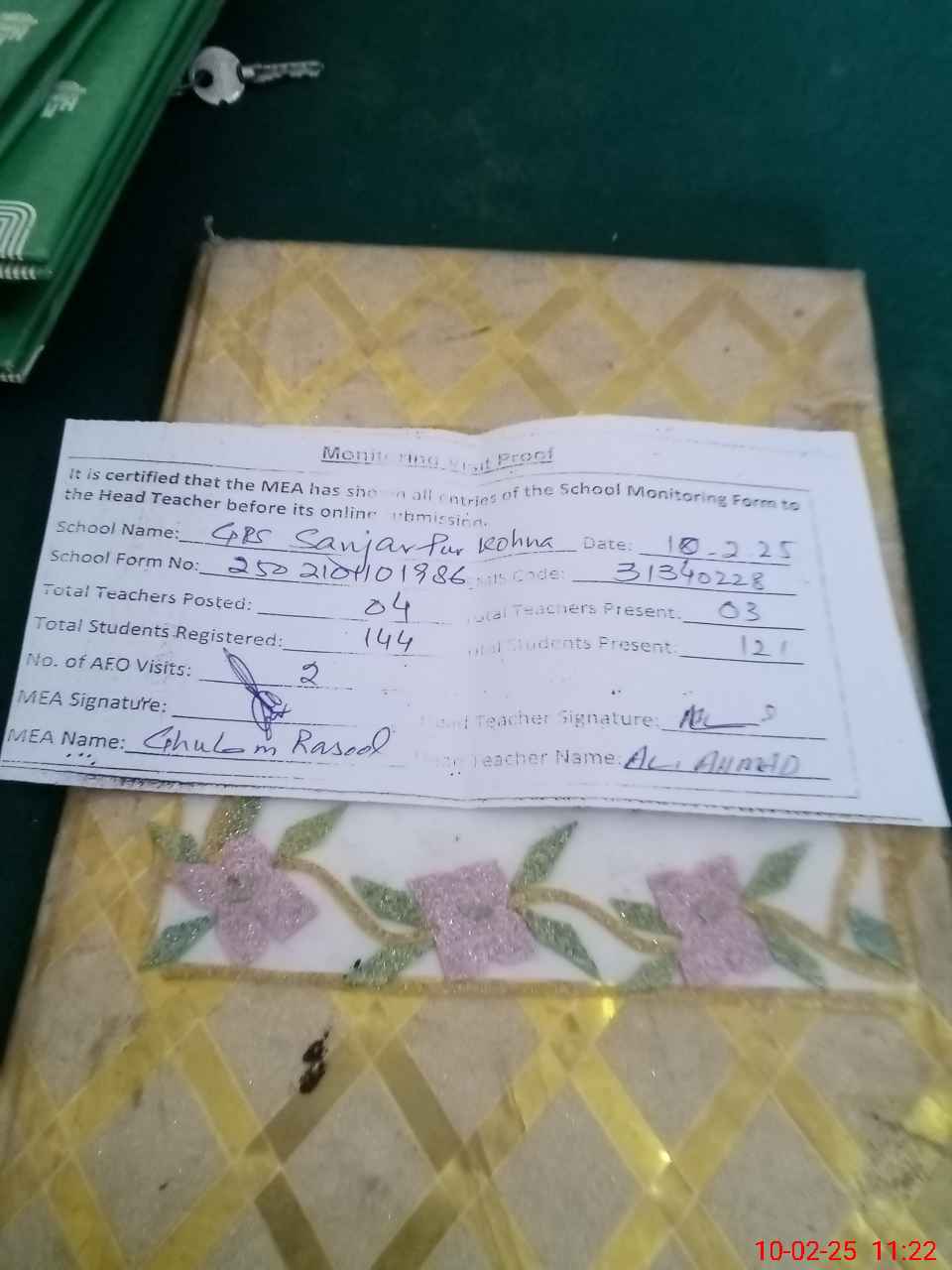 | EMIS Code: 31340228 | Name of School: GPS SANJAR PUR KHOHNA | |||