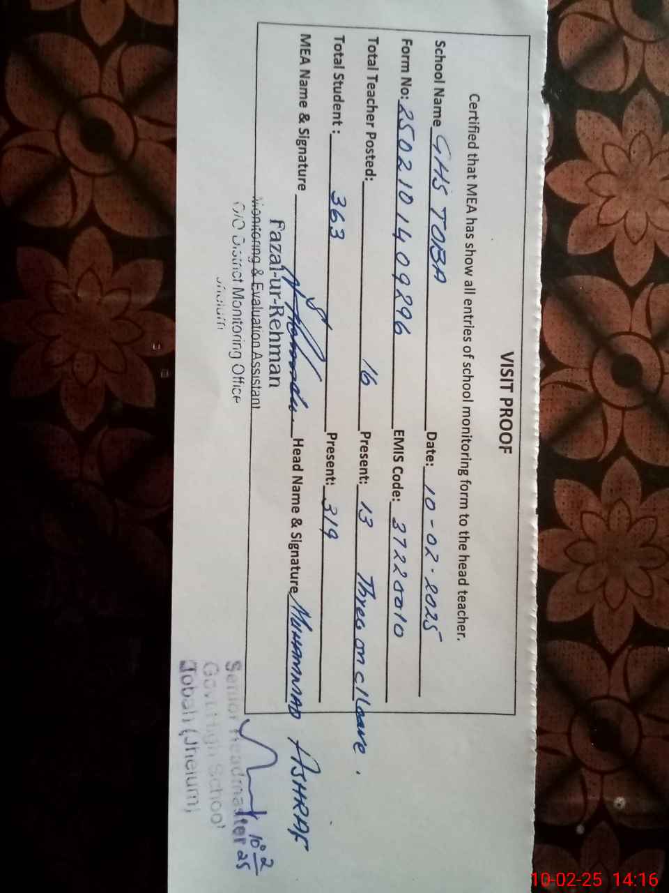 | EMIS Code: 37220010 | Name of School: GHS TOBAH | |||