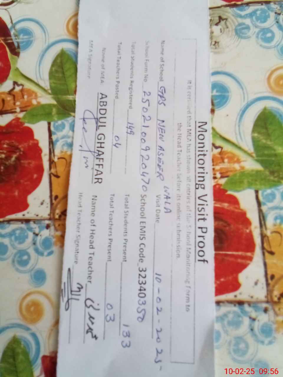 | EMIS Code: 32340350 | Name of School: GPS NEW ASIR WALA | |||