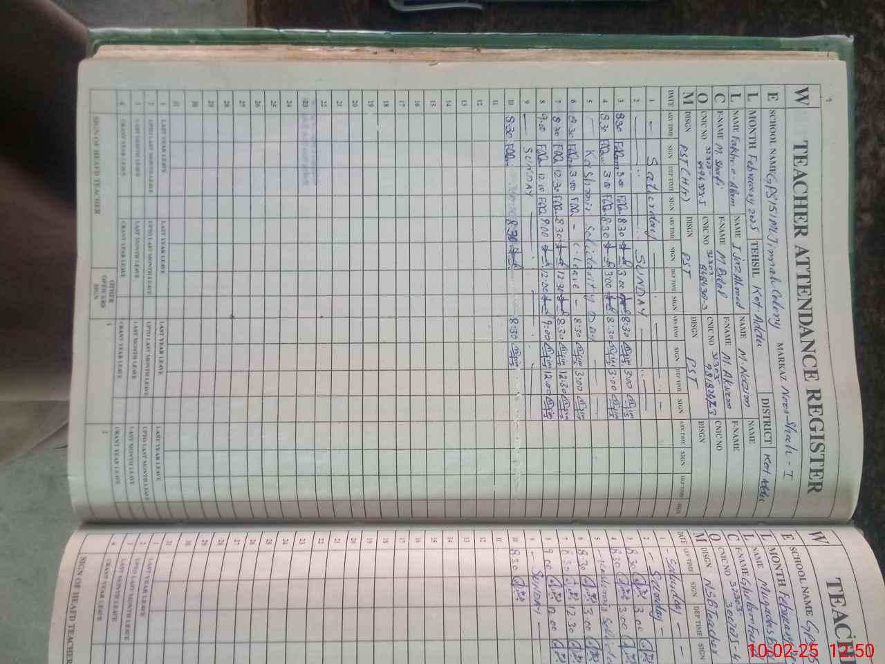 | CNIC | Full Name | Designation | R/C | Absence During Last Calender Month |