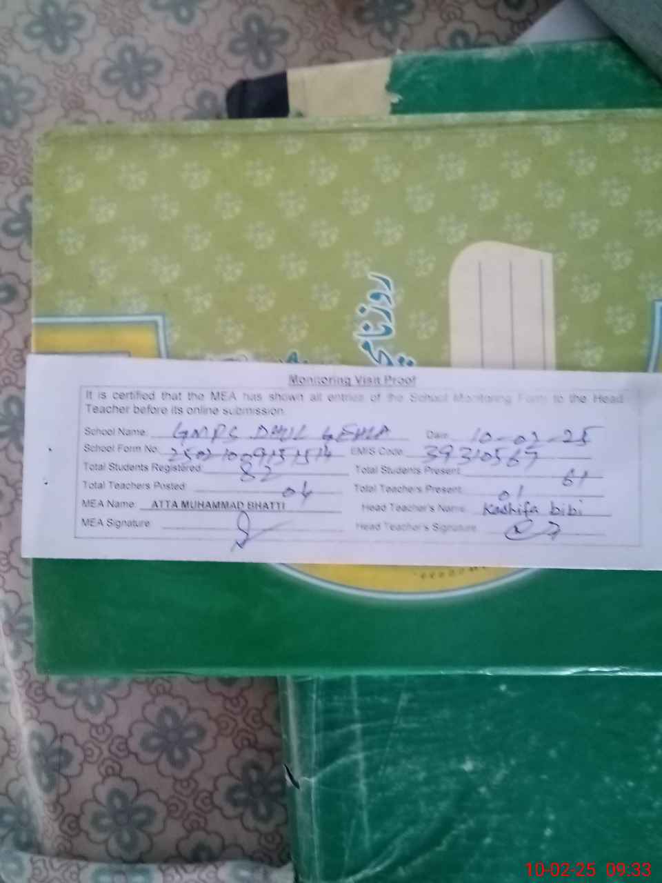 | EMIS Code: 39310567 | Name of School: GMPS DHUL GEHLA | |||