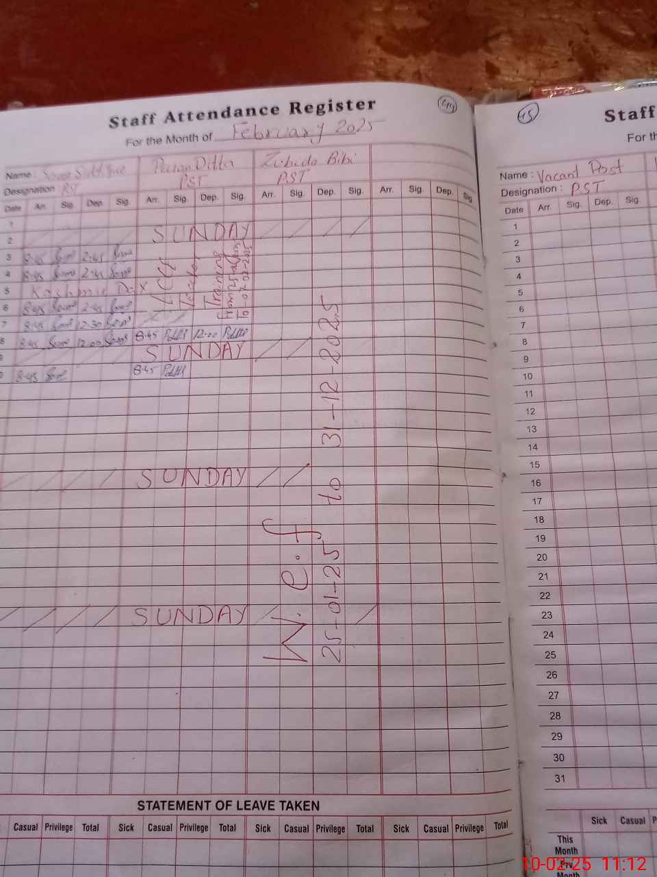 | Leave | Duty | Absent | Maternity | Medical | Ex- Pak |