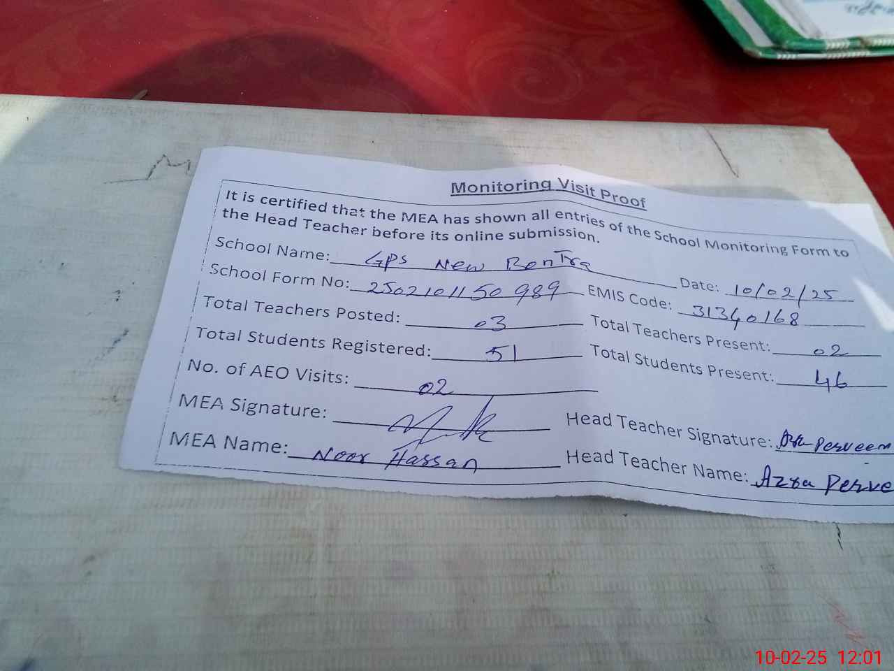 | EMIS Code: 31340168 | Name of School: GPS NEW BONTRA | |||