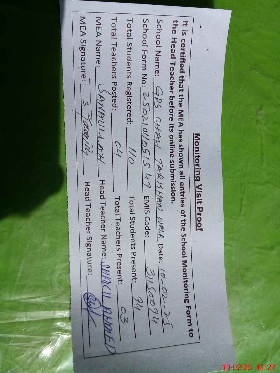 | EMIS Code: 31150094 | Name of School: GPS CHAH TARKHANA WALA | |||