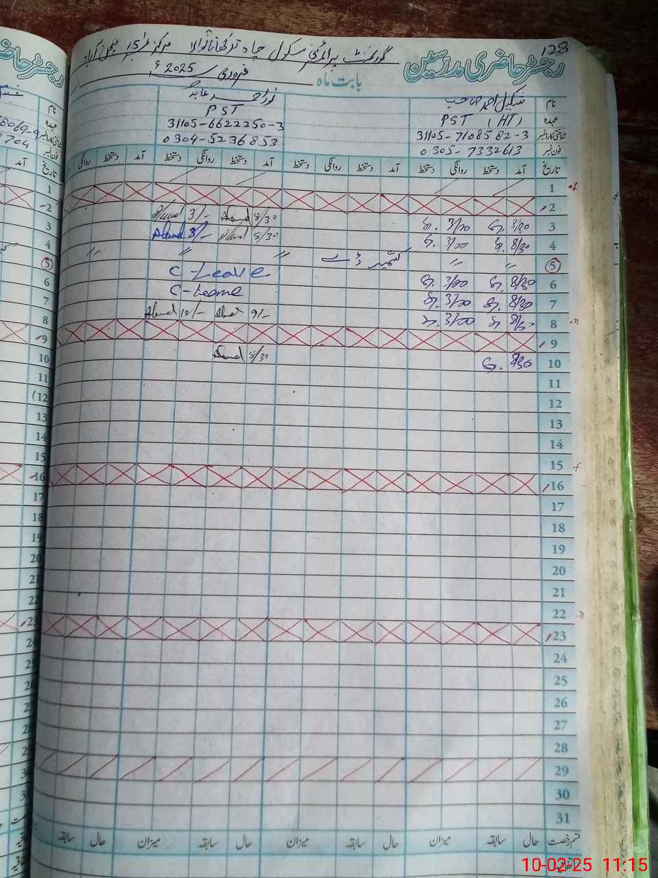 | Name: Sh**** Ah**** Designation: (School Headmaster's/Headmistress's) PST Phone/Cell Number: 03**** |