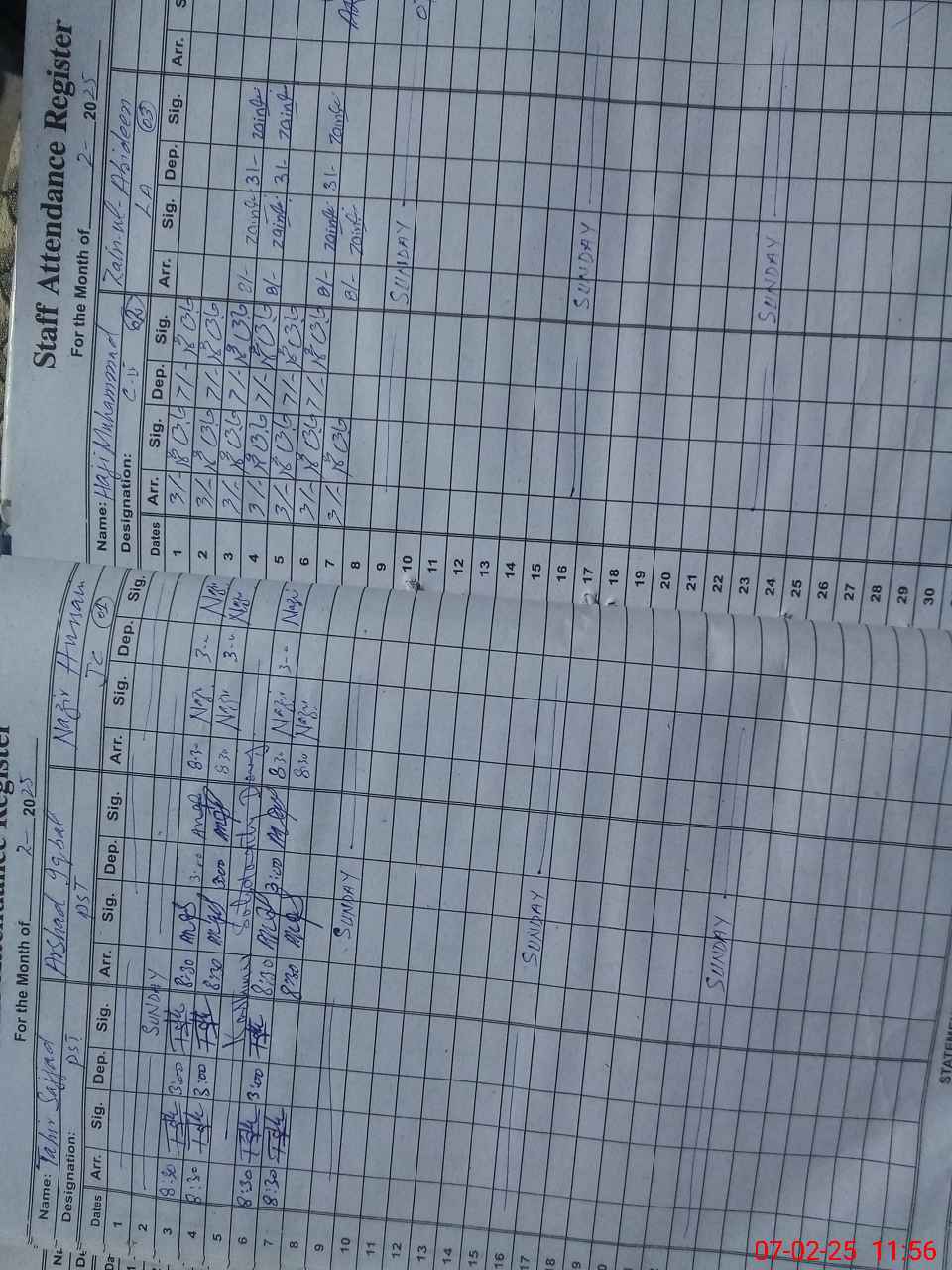 | CNIC | Full Name | Designation | R/C | Absence During Last Calender Month |