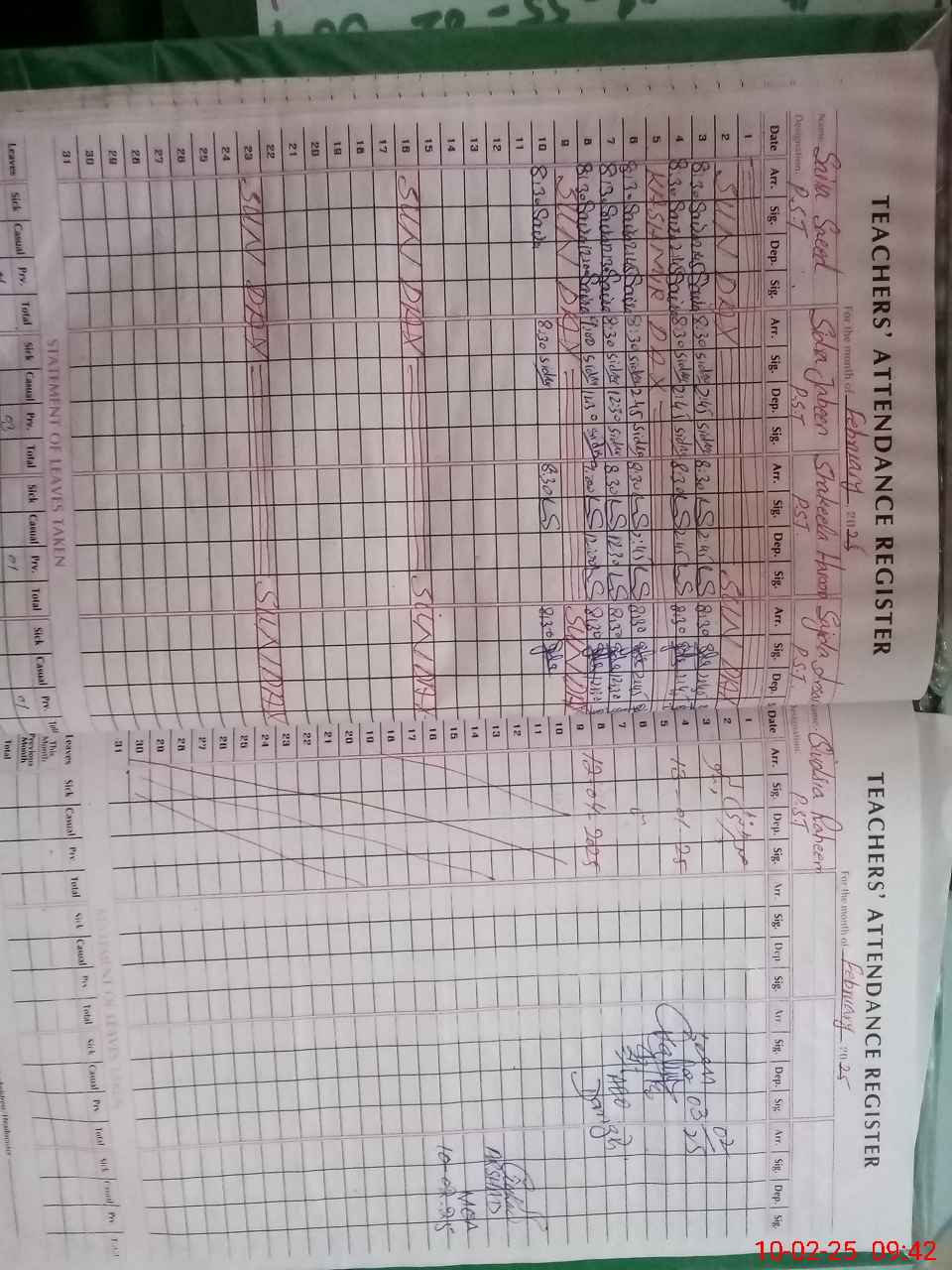 | CNIC | Full Name | Designation | R/C | Absence During Last Calender Month |