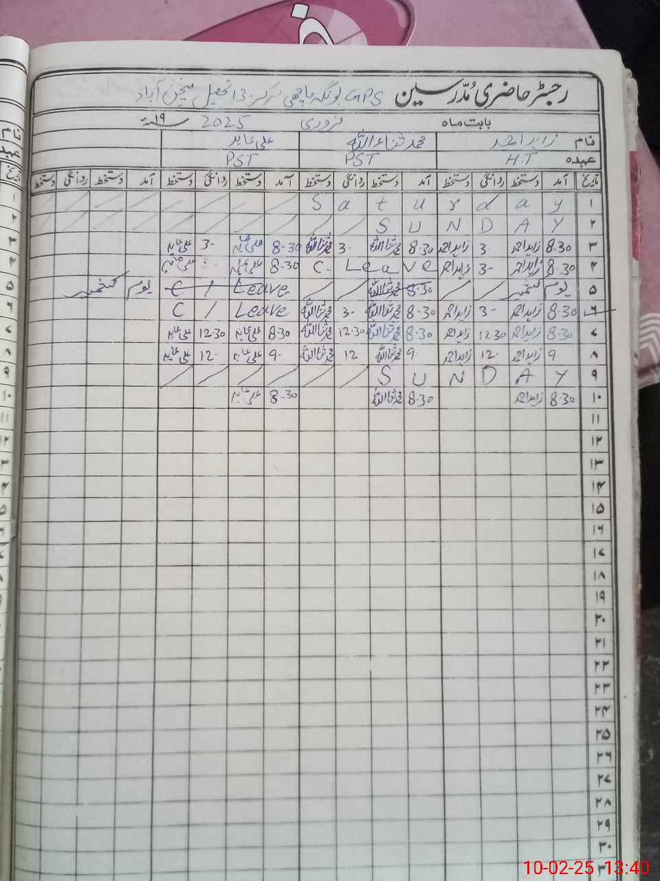 | Name: ZA**** AH**** Designation: (School Headmaster's/Headmistress's) PST Phone/Cell Number: 03**** |