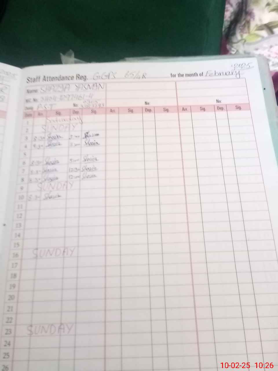 | CNIC | Full Name | Designation | R/C | Absence During Last Calender Month |