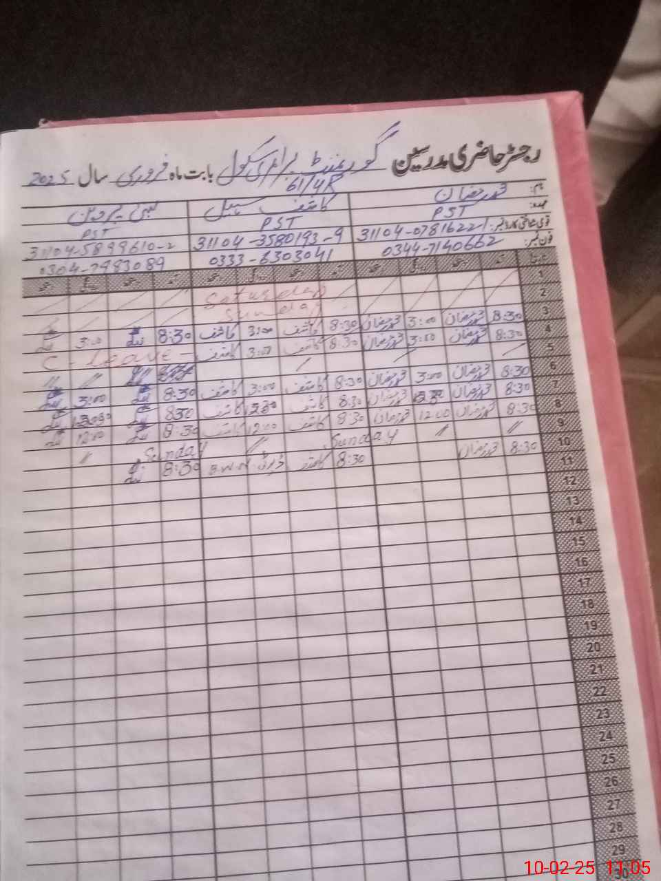 | Name: MU**** RA**** Designation: (School Headmaster's/Headmistress's) PST Phone/Cell Number: 03**** |
