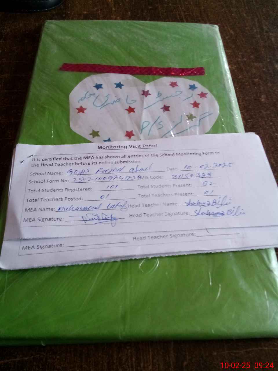 | Attendance Register | Head Teacher | MEA with School | Visit Proof |