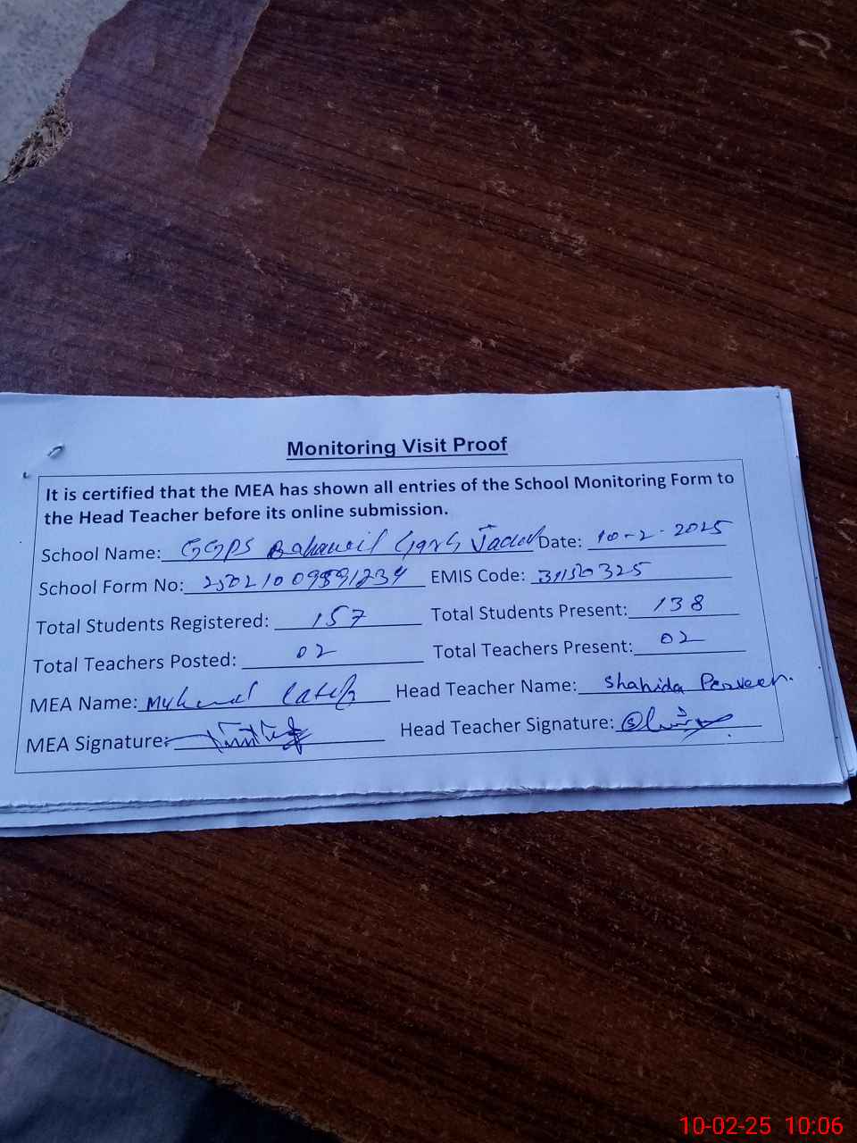 | EMIS Code: 31150325 | Name of School: GGPS BAHAWAL GARH JADEED | |||