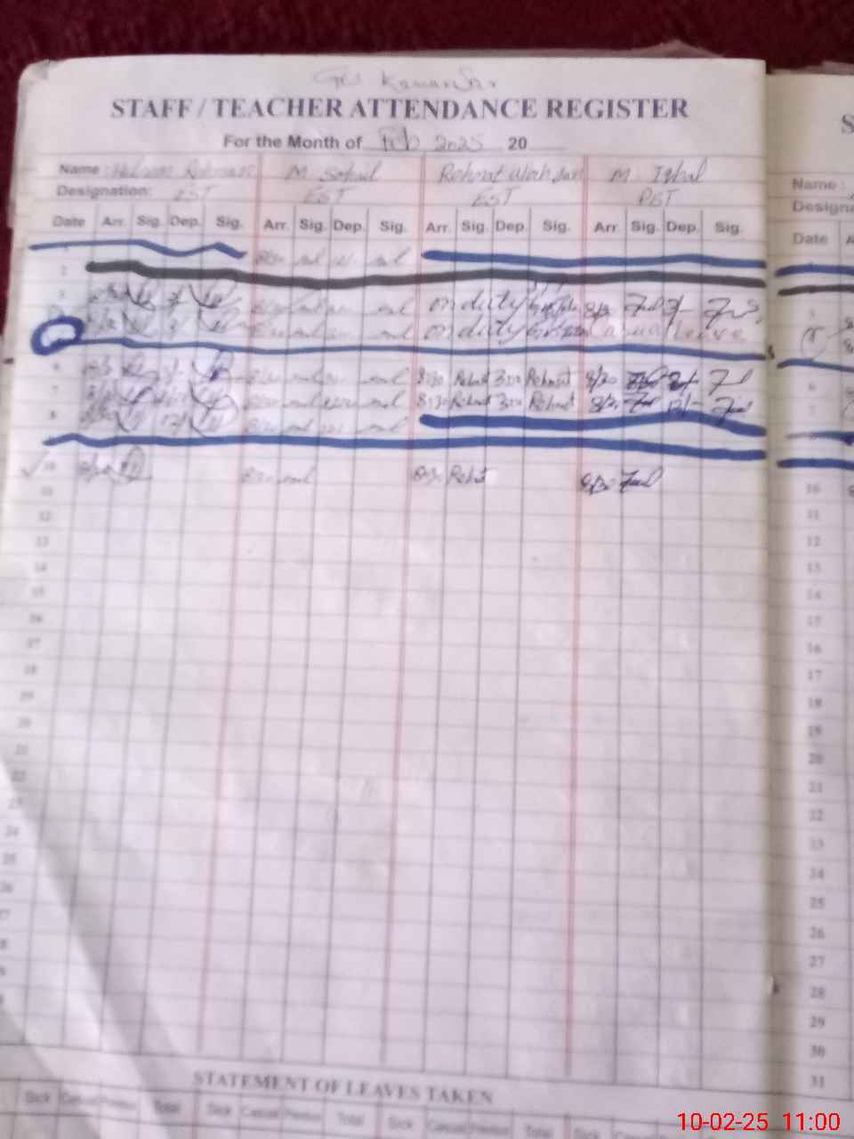 | Name: HA**** RE**** Designation: (School Headmaster's/Headmistress's) EST Phone/Cell Number: 03**** |