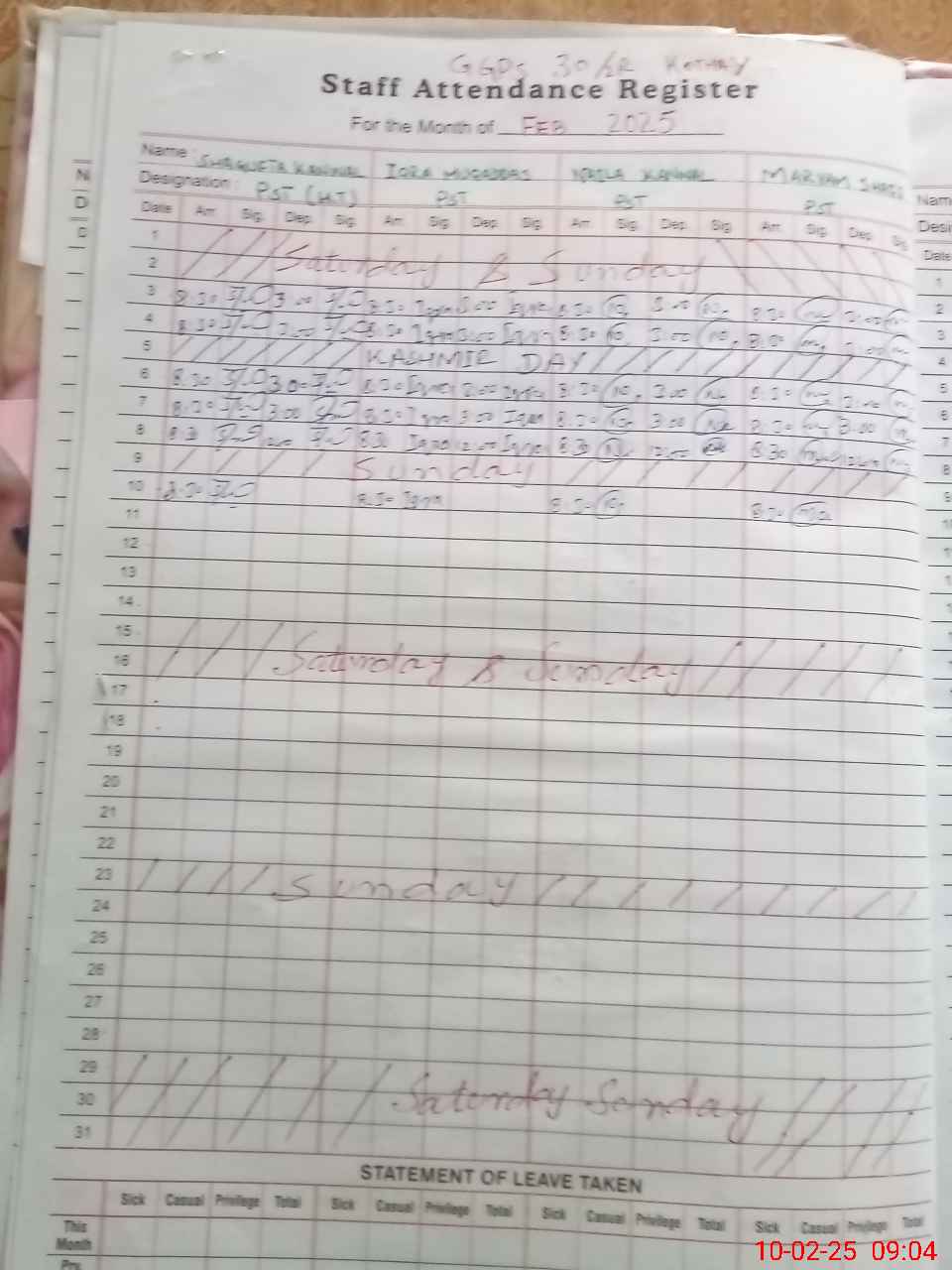 | Name: Sh**** Ka**** Designation: (School Headmaster's/Headmistress's) PST Phone/Cell Number: 03**** |