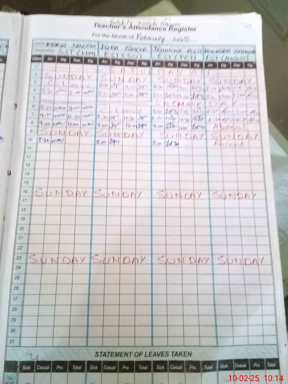 | 35**** | Ha**** Is**** | PST | Regular | 0 | 0 | 0 | 0 | 0 | 0 | 0 | 0 | 0 | Absent (Un-Authorized) |