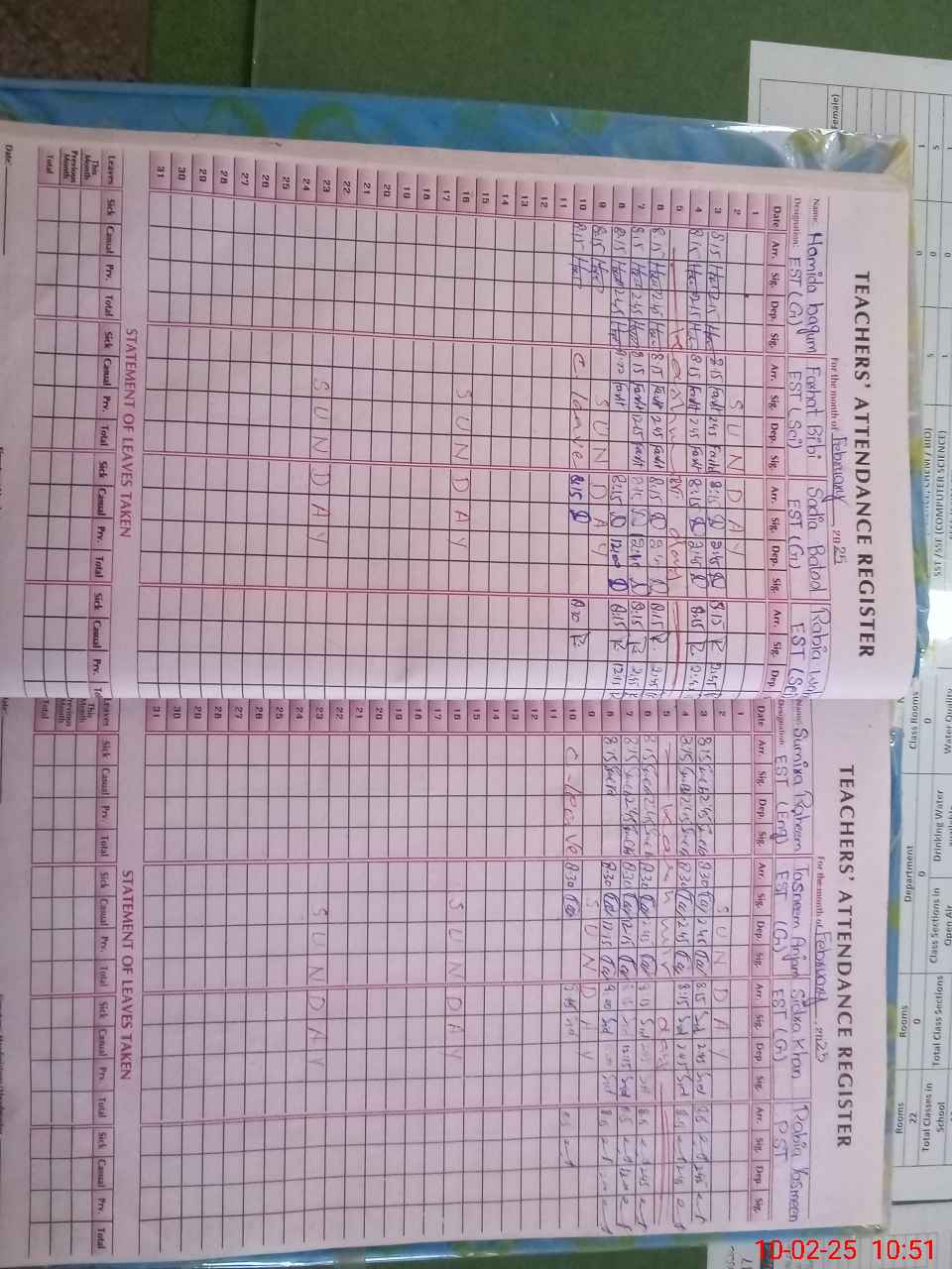 | Leave | Duty | Absent | Maternity | Medical | Ex- Pak |