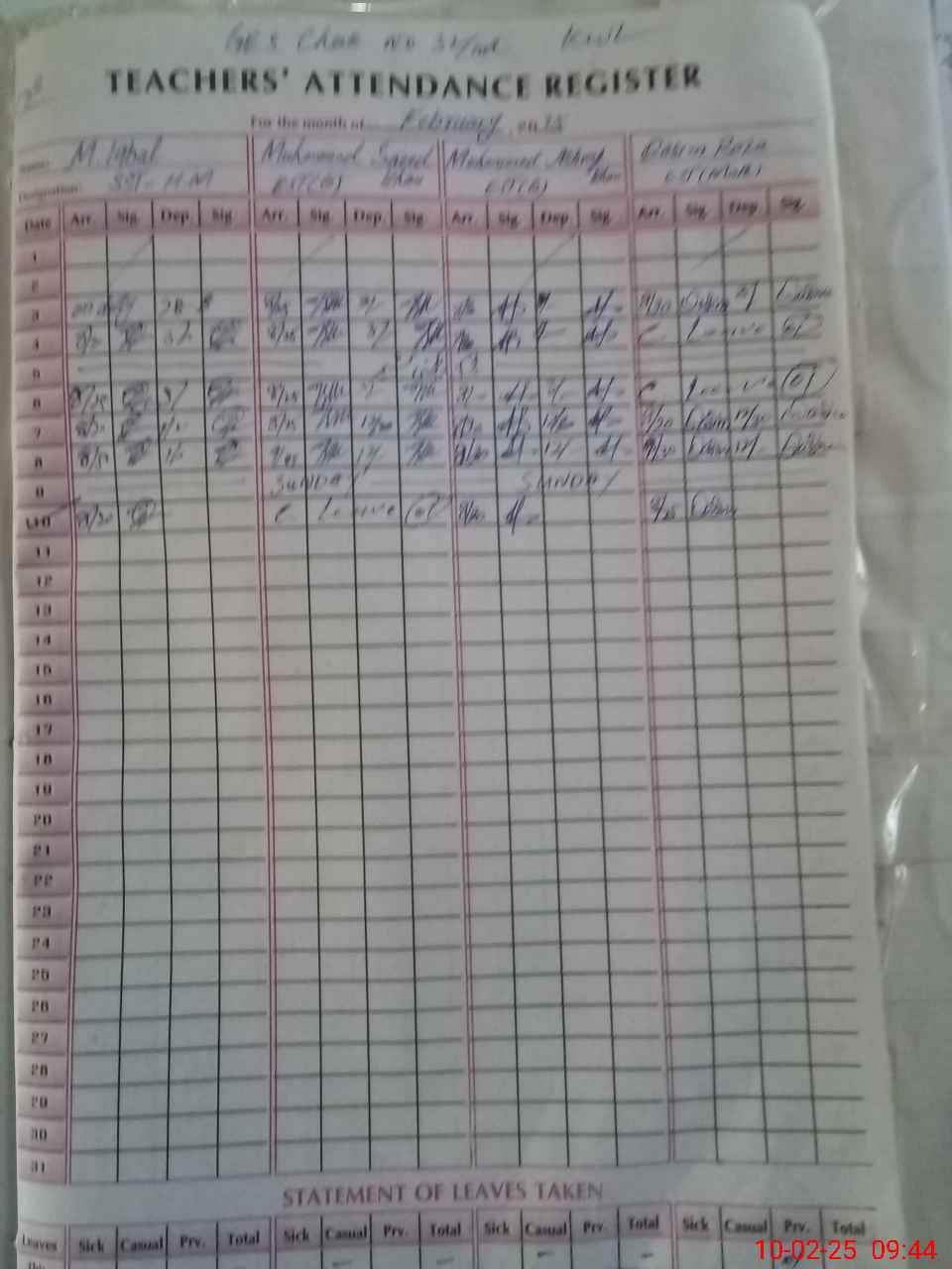 | Name: Mu**** Iq**** Designation: (School Headmaster's/Headmistress's) SST Phone/Cell Number: 03**** |