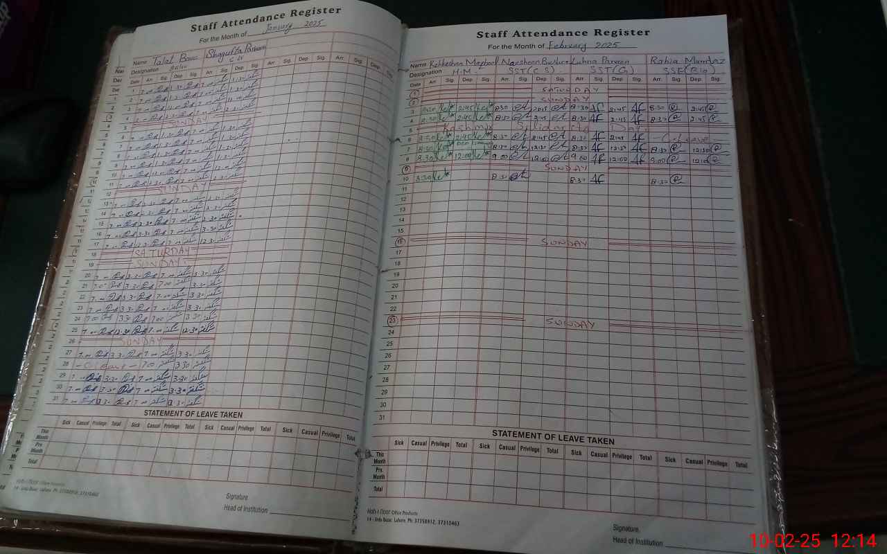 | CNIC | Full Name | Designation | R/C | Absence During Last Calender Month |