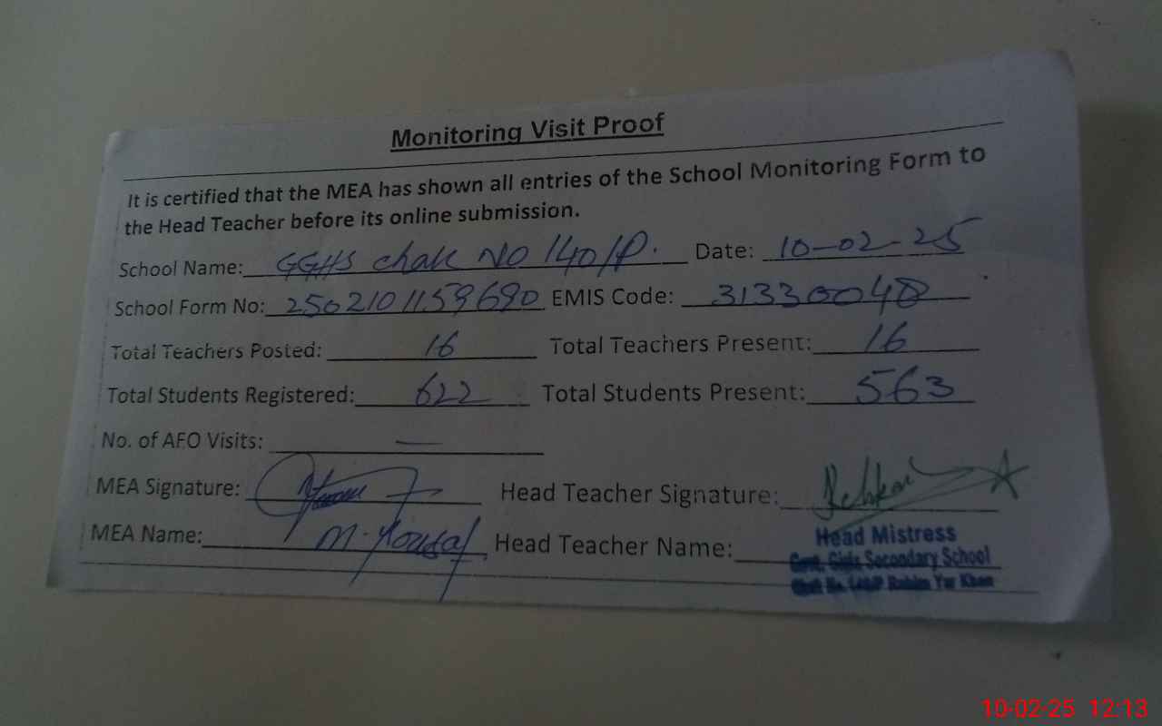 | Attendance Register | Head Teacher | MEA with School | Visit Proof |