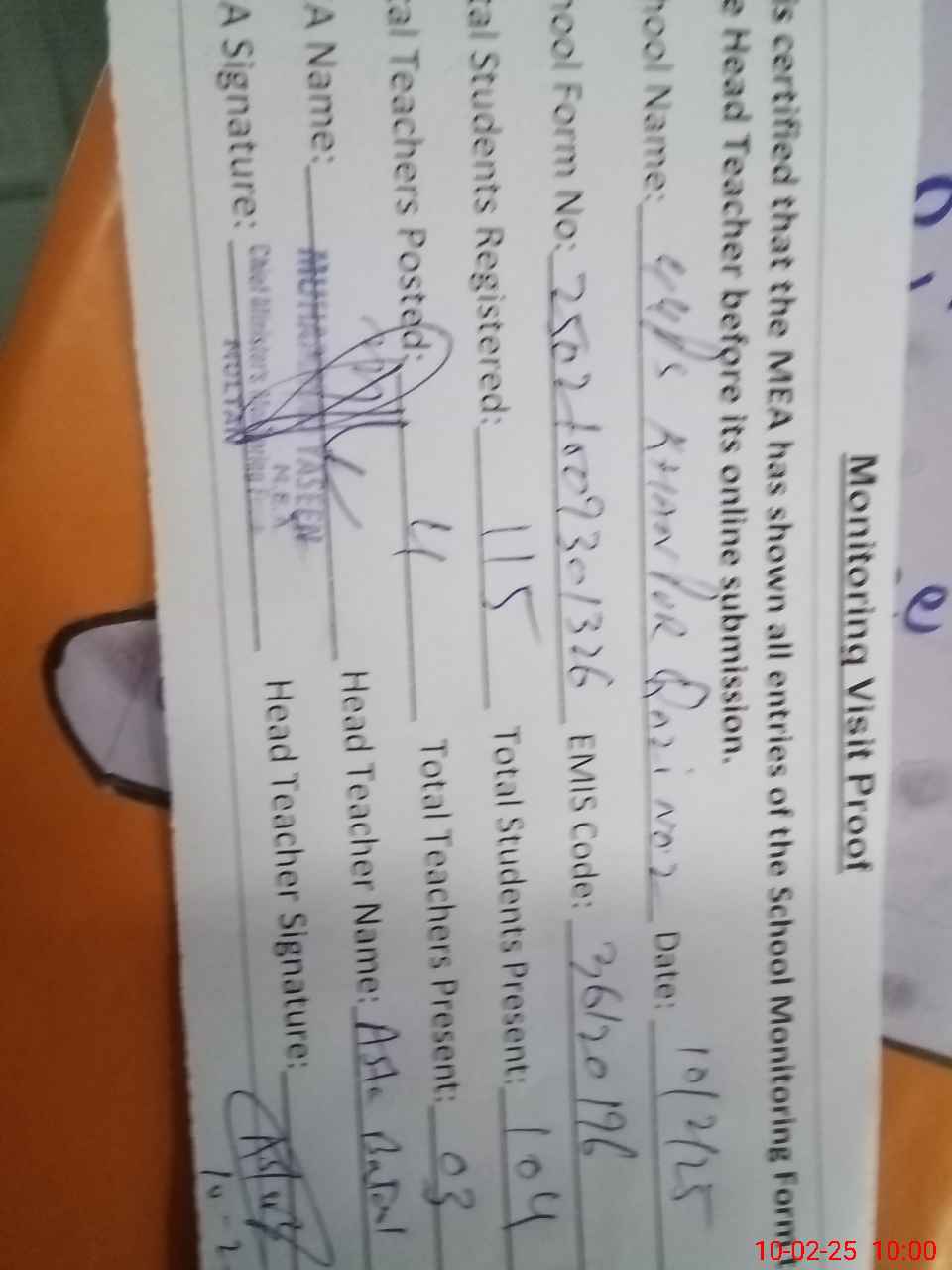 | Name: As**** Ba**** Designation: (School Headmaster's/Headmistress's) PST Phone/Cell Number: 03**** |