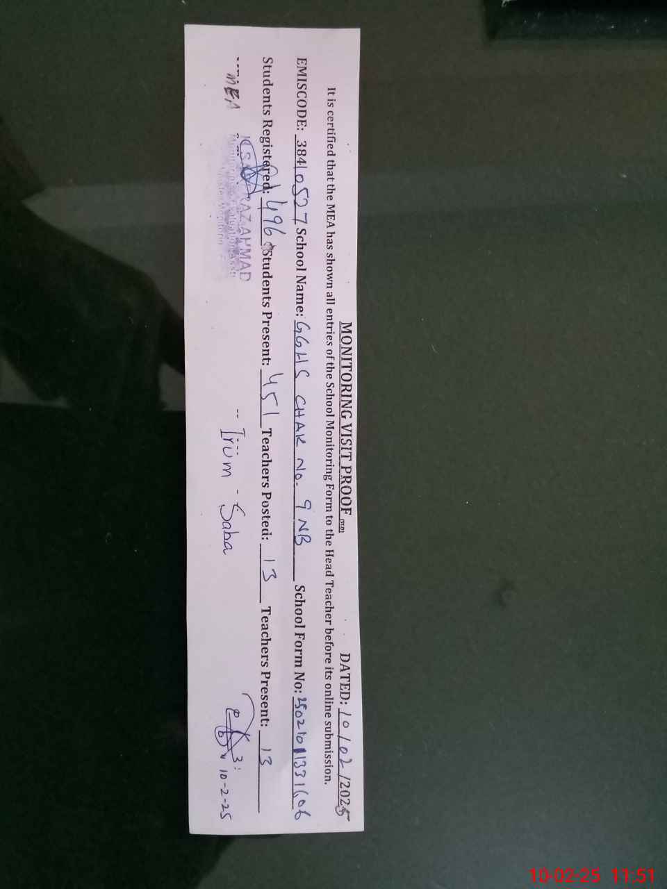 | EMIS Code: 38410527 | Name of School: GGHS CHAK NO.9 NB | |||