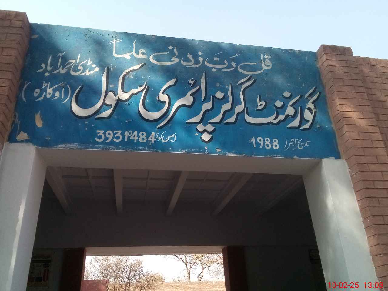 | District: OKARA | Tehsil: DEPALPUR | Markaz: MANDI AHMAD ABAD - FEMALE | Level: Primary | |