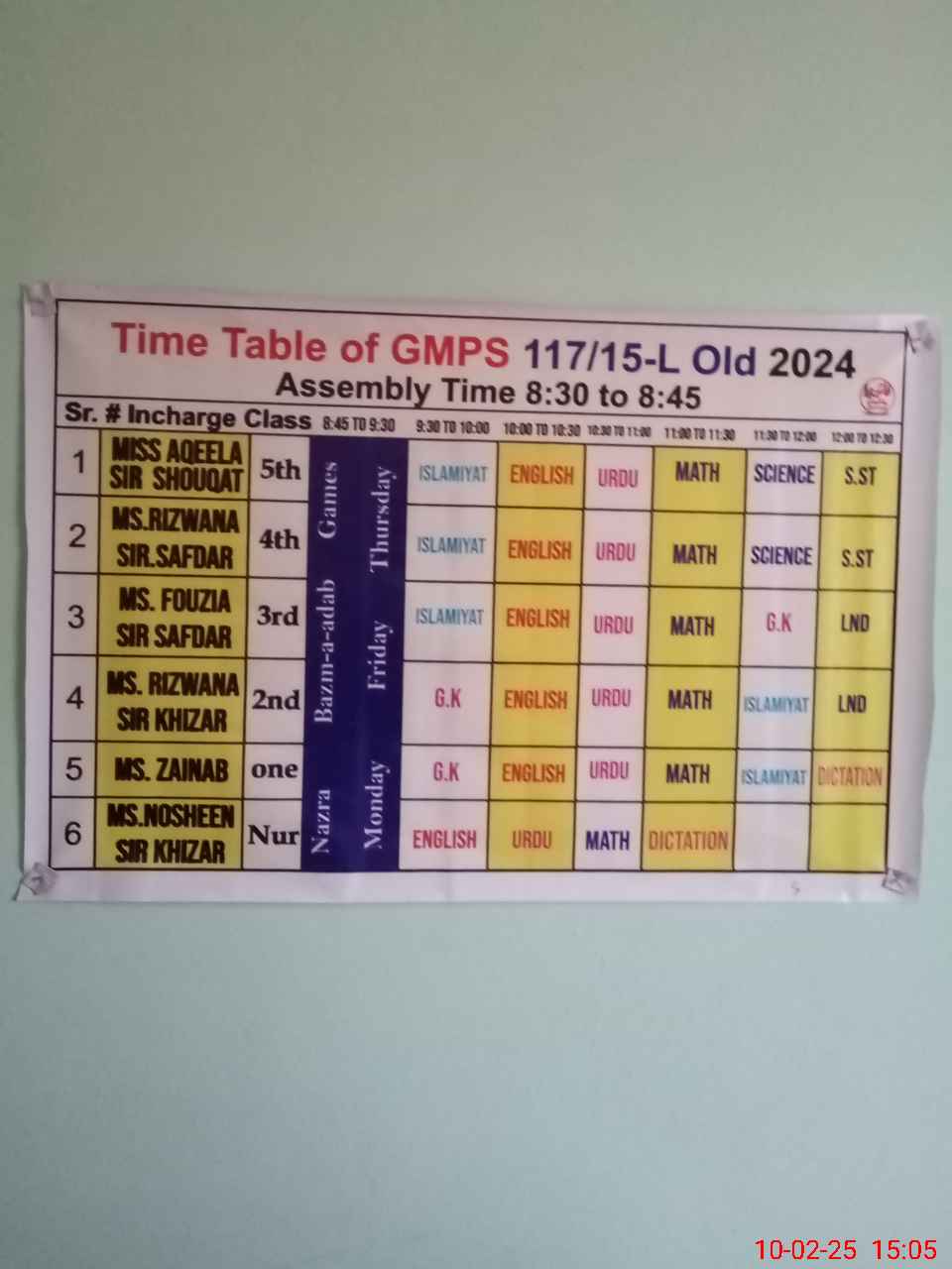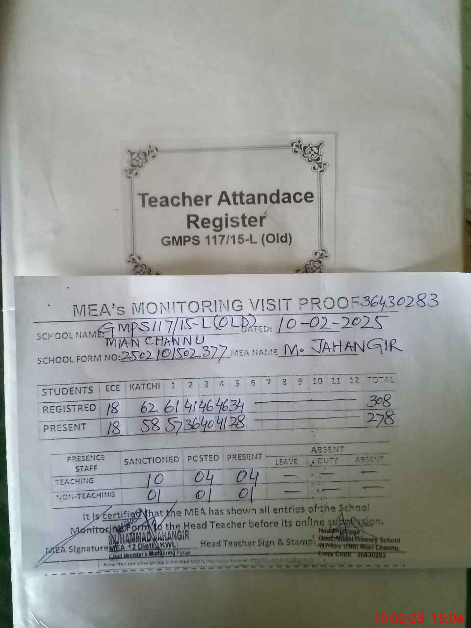 | EMIS Code: 36430283 | Name of School: GMES 117/15-L OLD, MIAN CHANNU | |||