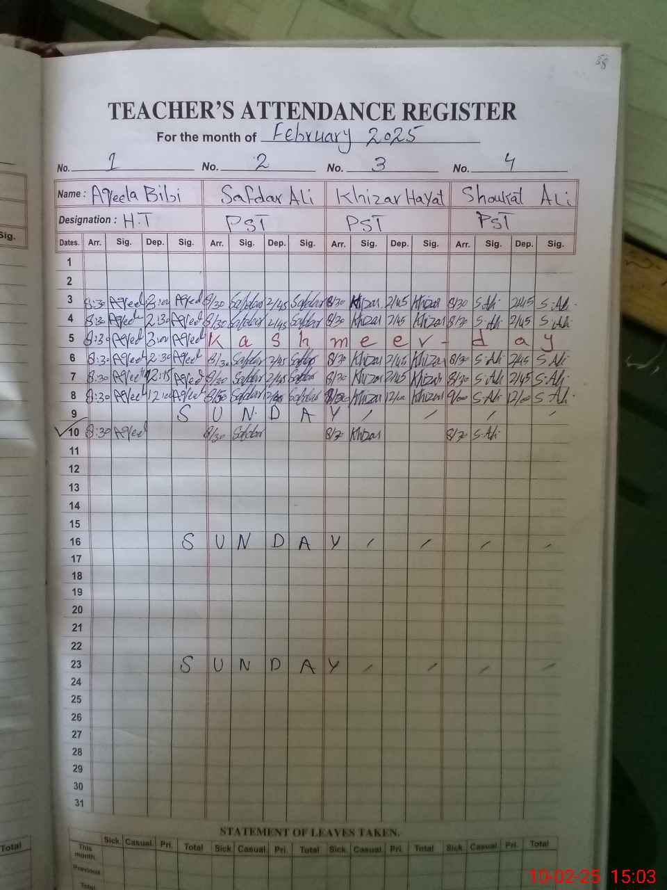 | Name: Aq**** Bi**** Designation: (School Headmaster's/Headmistress's) PST Phone/Cell Number: 03**** |