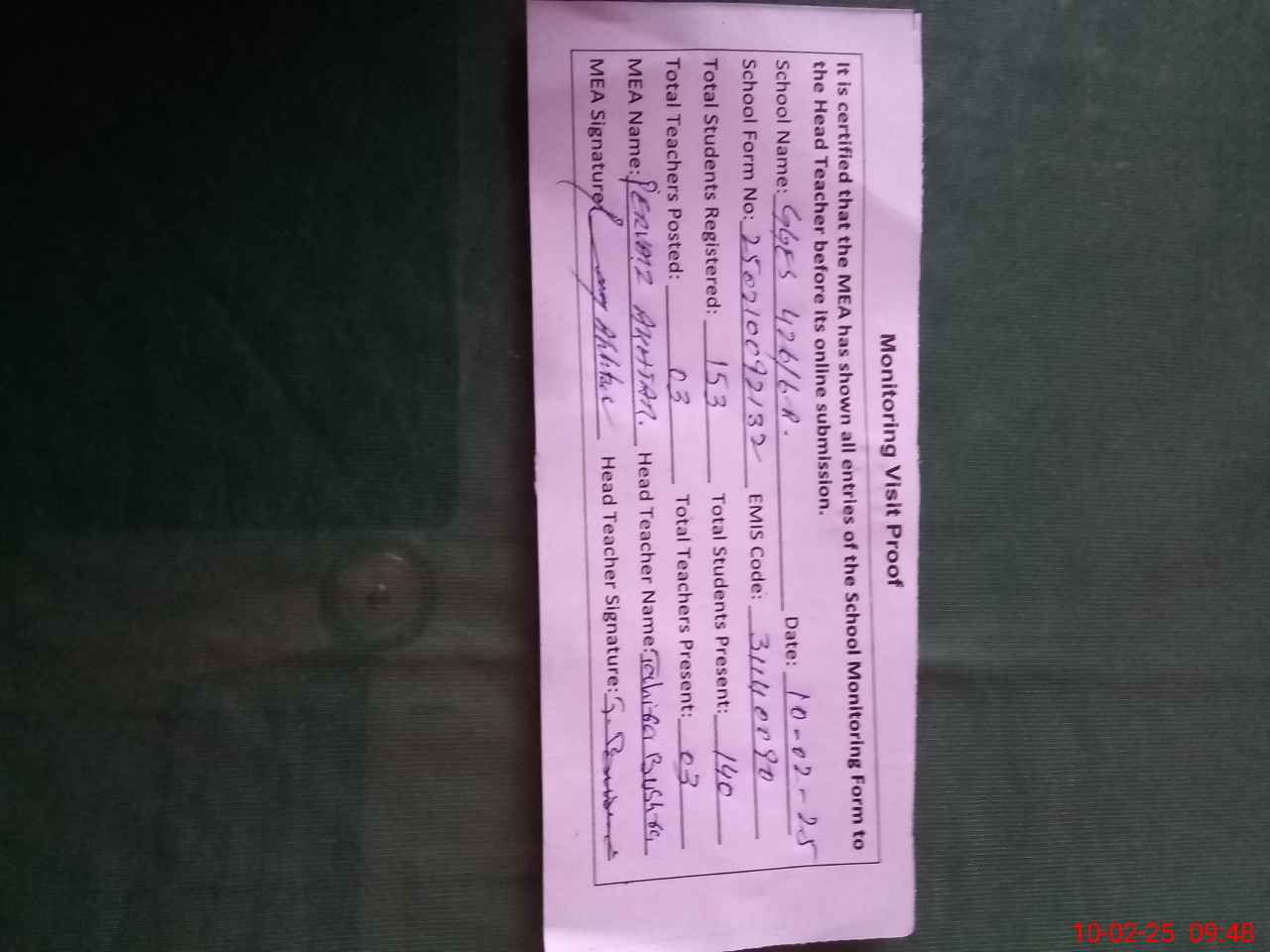 | Certified that this School was Inspected by the Undersigned MEA/DMO Today and the Information Stated Above is as Per Record. | |||||