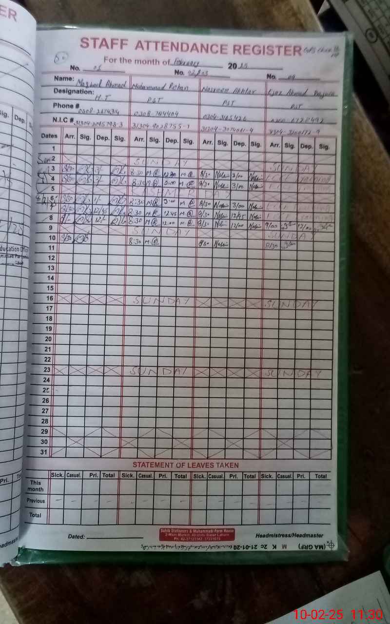 | Name: MA**** AH**** Designation: (School Headmaster's/Headmistress's) PST/PTC/JV Phone/Cell Number: 03**** |